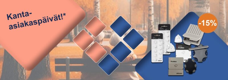 Kuulotarvikkeella alkoi Kanta-asiakaspäivät! Mikäli et vielä ole Kuulotarvikkeen kanta-asiakas, tilaa Kuulotarvikkeen uutiskirje ja saat alennuskoodin sähköpostiisi! Sen lisäksi kuulet ensimmäisten joukossa tulevista kampanjoista ja kuuloalan uutisista!